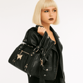 🦋Butterpunk es el bolso que revoluciona el estilo retro con actitud punk. Fabricado en piel sintética negra, su diseño estructurado combina asas cortas y correa ajustable para llevarlo como bandolera. Los herrajes dorados y el charm de mariposa aportan un toque provocador y femenino.