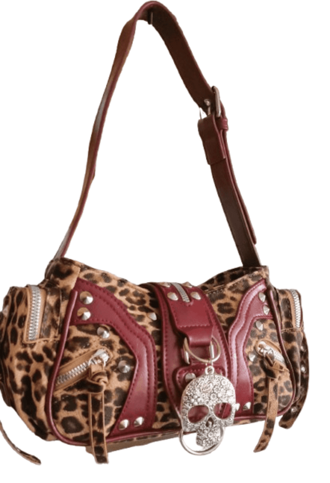 💀Dark Leopard Skull es el bolso que fusiona lo salvaje con lo oscuro. Su combinación de piel sintética granate y estampado leopardo lo convierte en una pieza feroz y sofisticada. Con múltiples bolsillos, detalles plateados y una calavera metálica central, este bolso compacto está diseñado para llevar en la mano o al hombro.