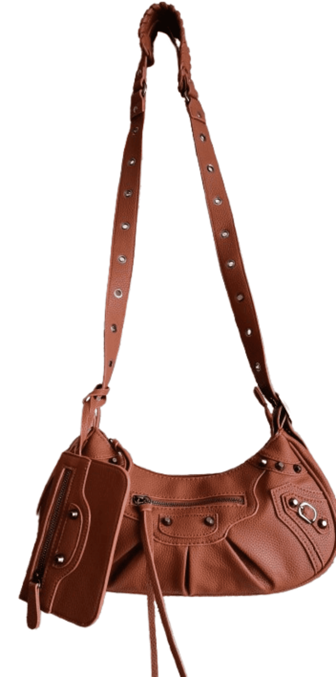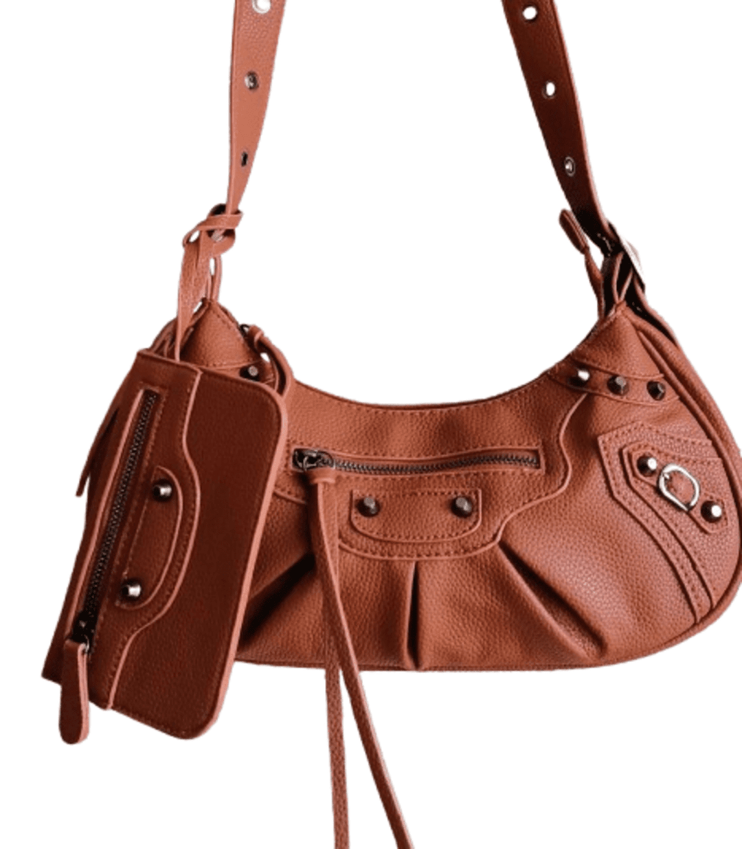 👜Fang es el bolso compacto que muerde con estilo retro y funcionalidad urbana. Fabricado en piel sintética marrón, su diseño tipo bandolera o bolso de hombro incluye una correa ajustable con ojales metálicos, bolsillo frontal y pouch desmontable. Ideal para llevar lo esencial con actitud.
