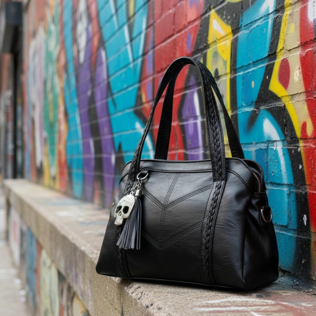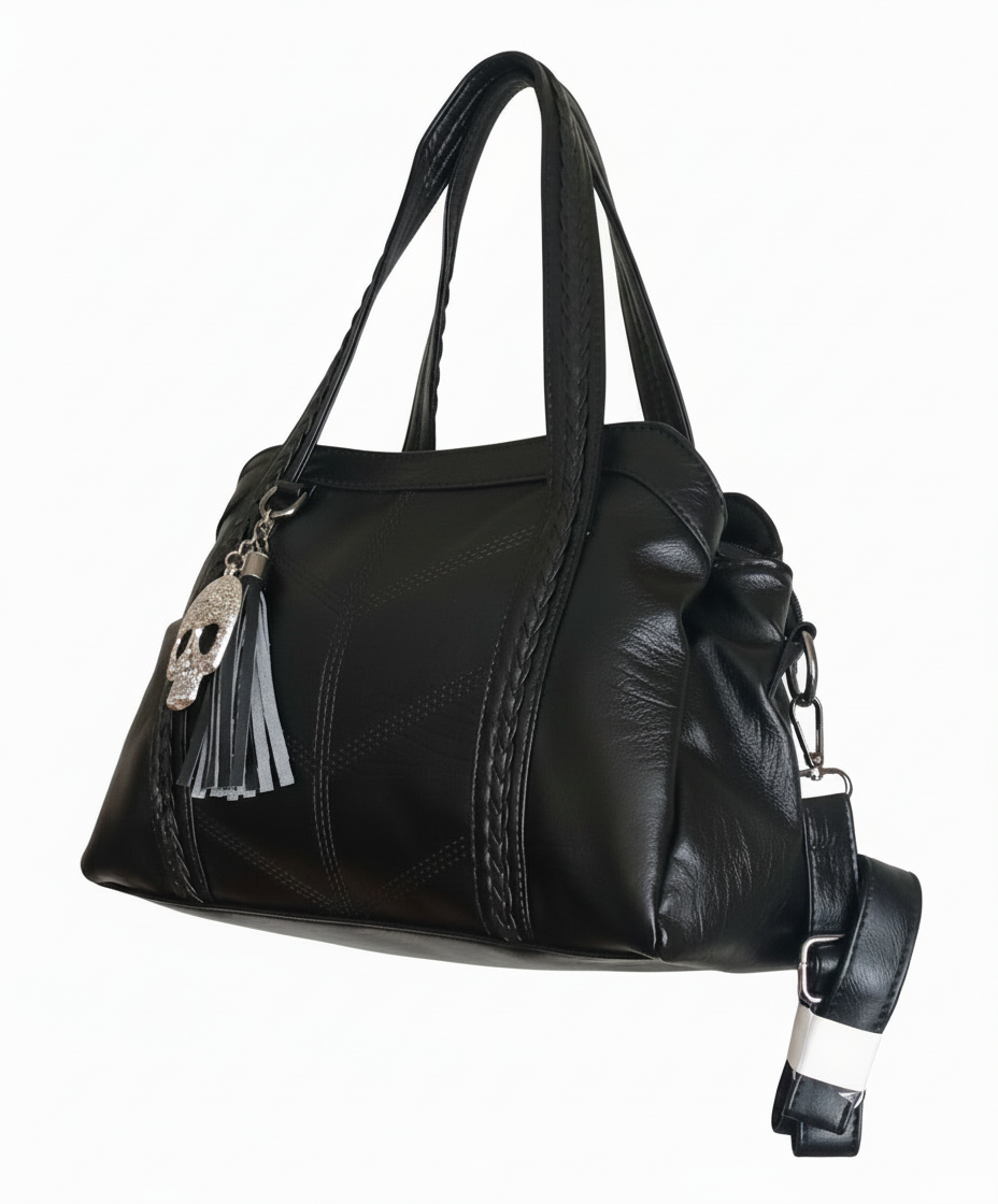 💀Iron Skull es un bolso pensado para quienes buscan un accesorio con carácter. Su diseño en piel sintética negra combina elegancia urbana con un toque alternativo gracias a su adorno metálico de calavera, que aporta fuerza y personalidad sin perder estilo.