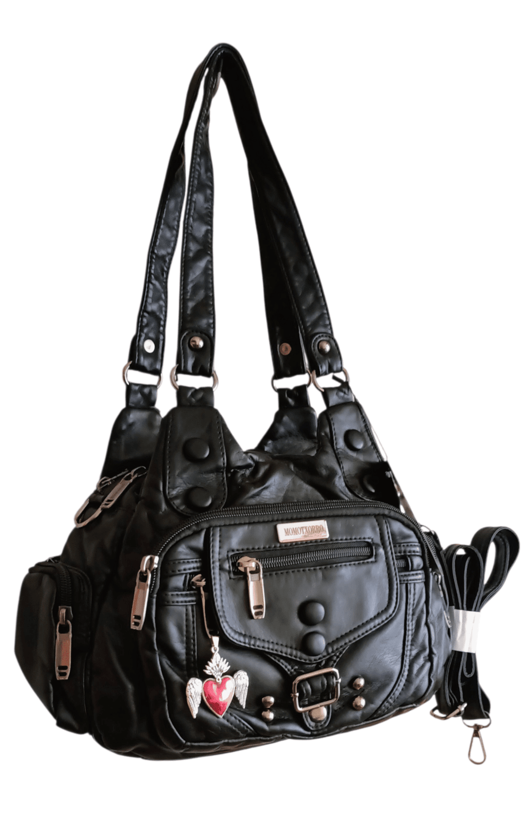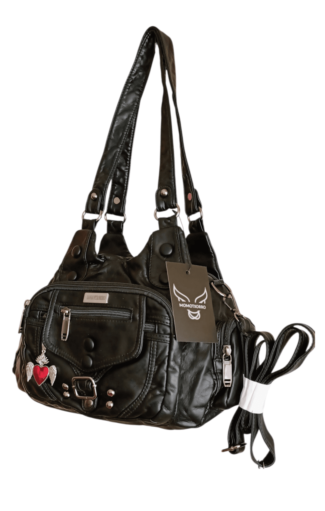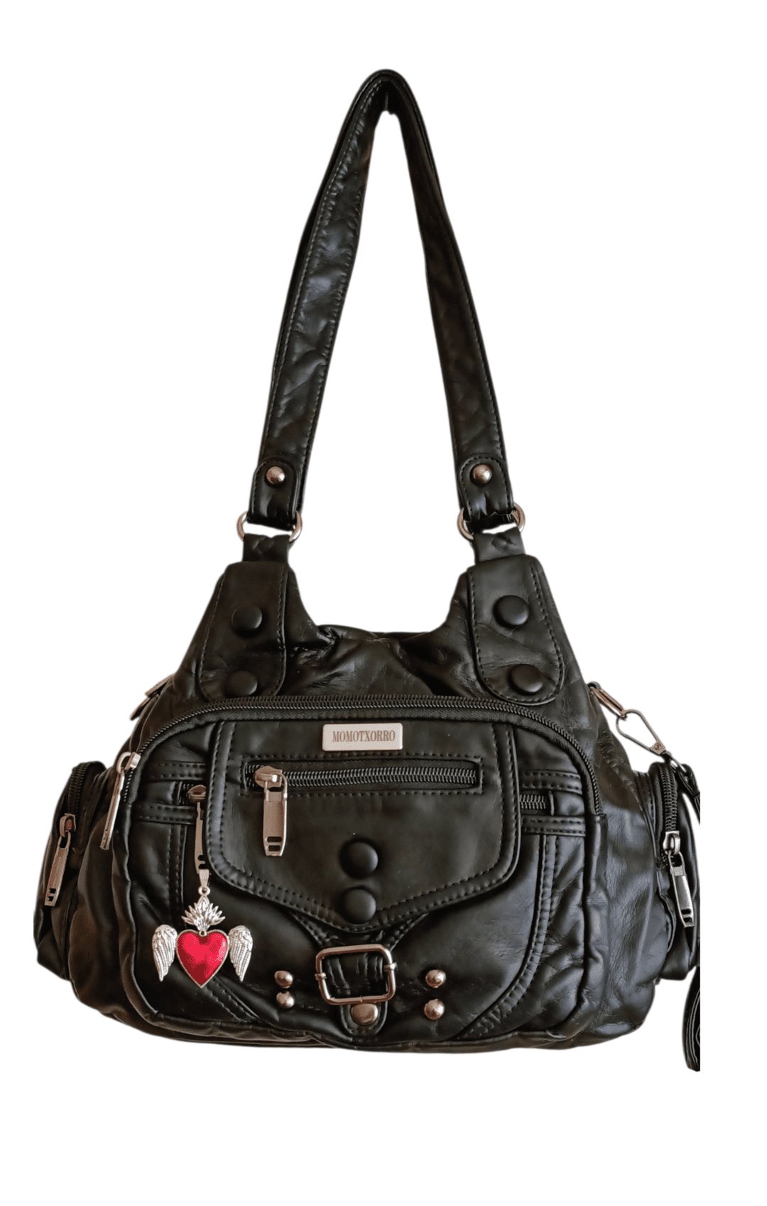 ❤️El Momotxorro “Urban Black Wings” es un bolso diseñado para mujeres que buscan estilo, funcionalidad y comodidad en un solo accesorio. Fabricado en piel sintética de alta calidad, presenta un acabado suave, resistente y fácil de limpiar. Medidas: 30x20x14cm