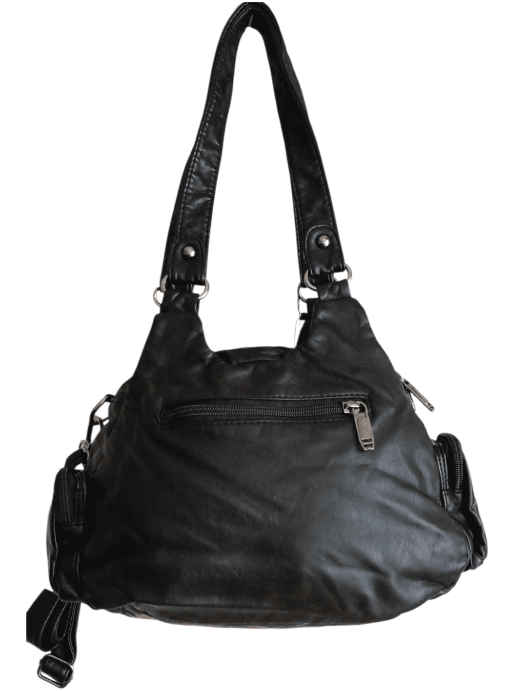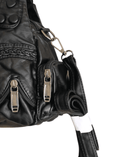 💀Su emblema central —una calavera plateada con alas metálicas— domina el diseño, flanqueado por cremalleras decorativas, tachuelas y trenzados que refuerzan su carácter alternativo. Las asas dobles y la correa desmontable permiten llevarlo al hombro o en la mano, adaptándose a tu ritmo urbano.