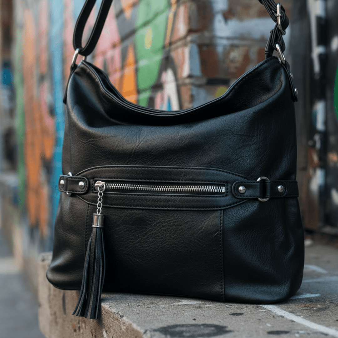 🖤Y2K Hook es un bolso urbano con estética Y2K y diseño funcional. Fabricado en piel sintética negra con textura, este modelo destaca por sus acabados metálicos, cremallera frontal con tirador decorativo y estructura versátil. Se puede llevar al hombro o como bandolera, ideal para el día a día con actitud.