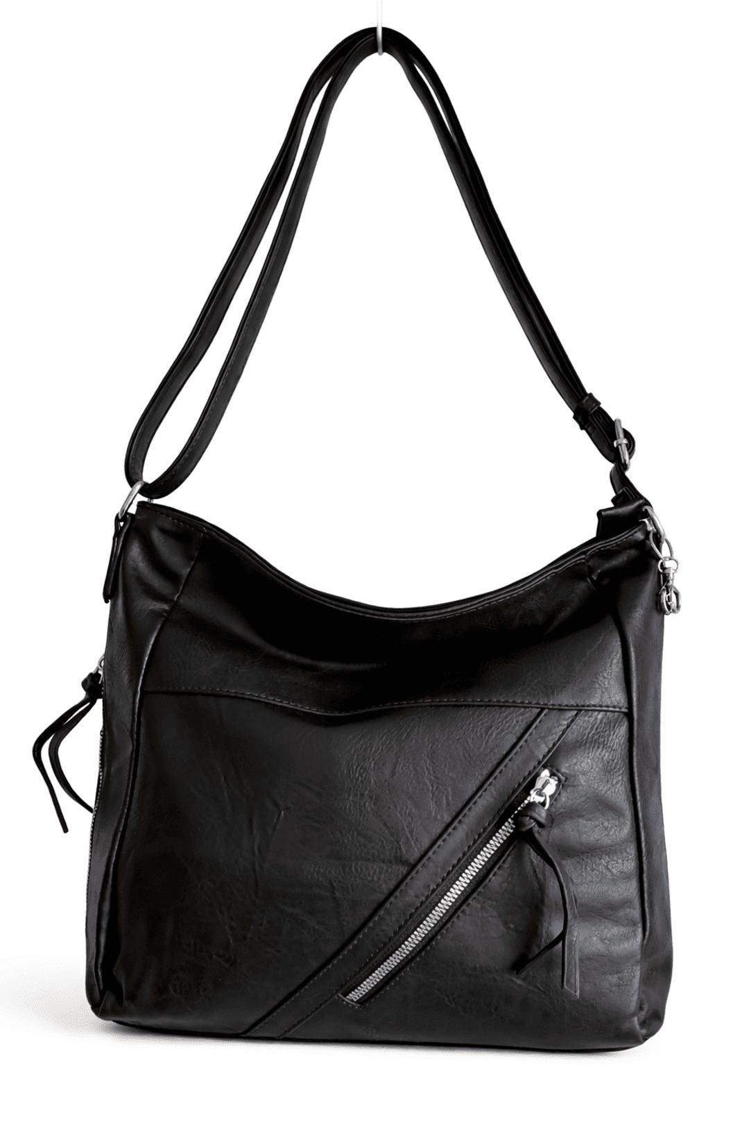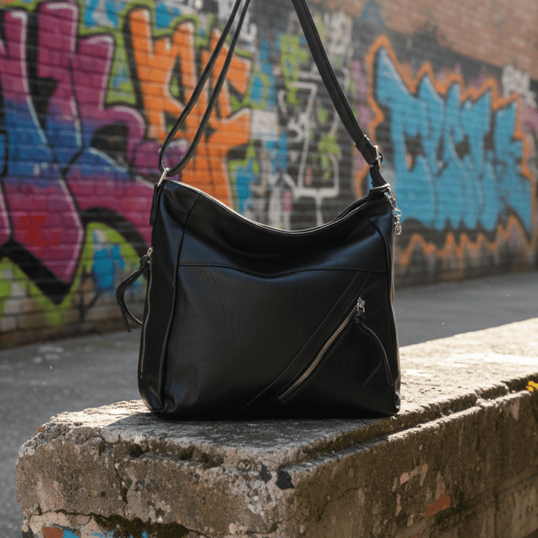 🖤Y2K Pulse es un bolso urbano con estética Y2K y un diseño minimalista pero contundente. Fabricado en piel sintética negra con textura, destaca por su cremallera diagonal frontal y herrajes metálicos que le dan un aire futurista y callejero. Su formato versátil permite llevarlo al hombro o como bandolera, perfecto para un día de movimiento con estilo.